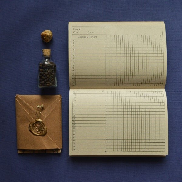 Libreta artesanal cosida a mano, tamaño A5, impresa en papel de cañamo.